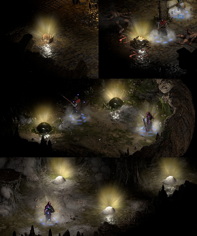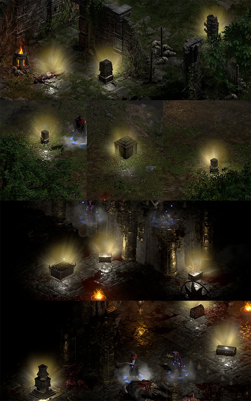 - (보류)캐릭터스킨v29 디아2인벤 제네식스님 숨겨진 보관함, 헐거운 돌, 바위의 외형을 보물 상자로 변경 : https://www.inven.co.kr/board/diablo2/5734/3297