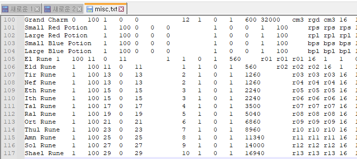 \mods \ Estia \ Estia.mpq \ data \ global \ excel \ misc.txt 파일 실행하셔서